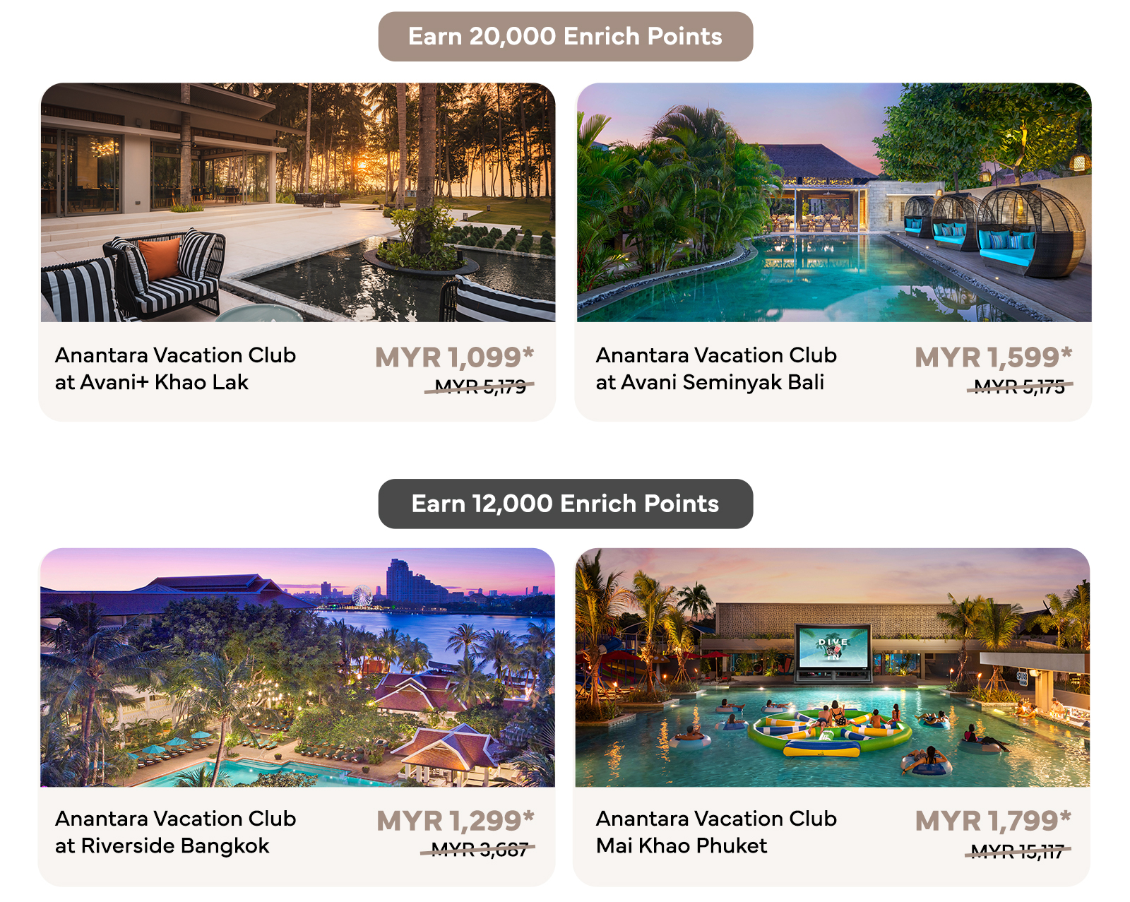 Check in for a 4-day, 3-night stay at only MYR 1,599* and earn 20,000 Enrich Points upon check out.