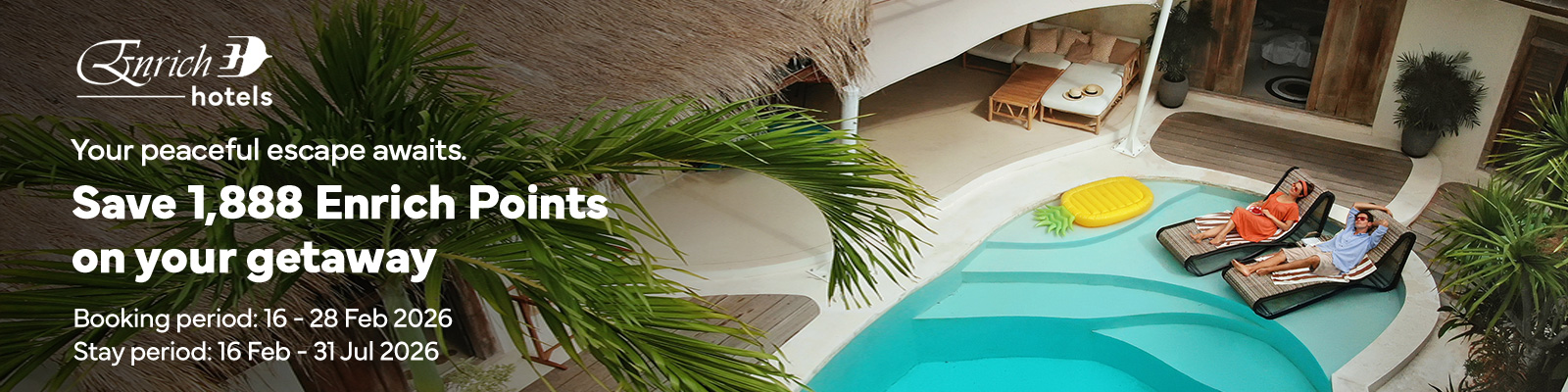 Books stays on Enrich Hotels and earn up to 15,000 Enrich Points per night